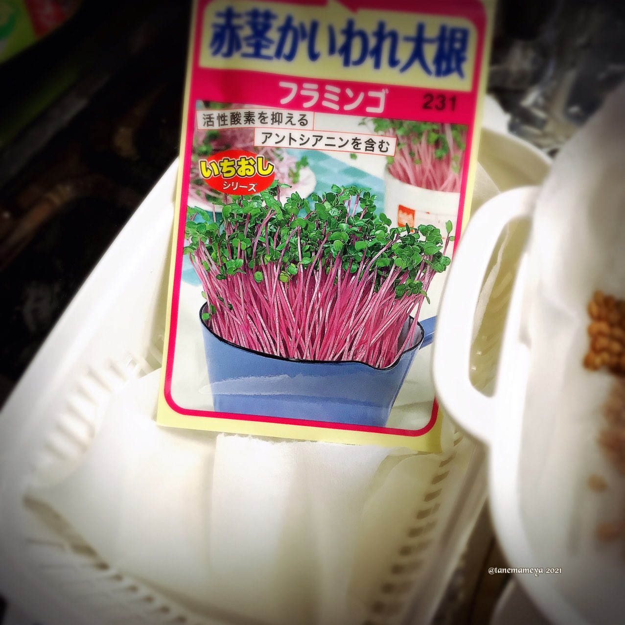 もうひとつはかいわれ大根に…入れ物がデカすぎる?