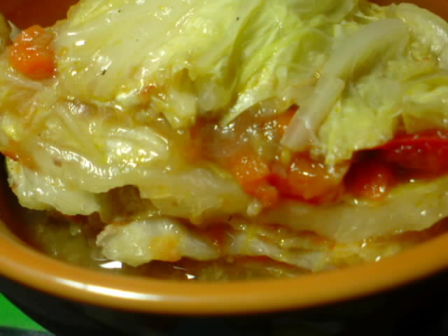 はくさいと合いびき肉の重ね蒸し・トマト味