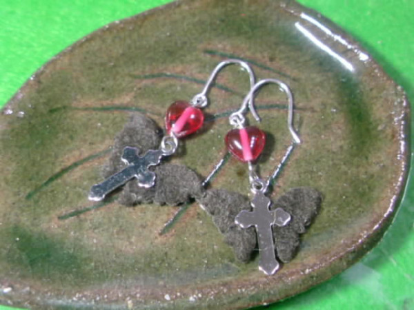 コウモリ十字架(ベースは合皮スエード蝶なのですがコウモリに見えなくもないってことでw)と、赤い心の臓。