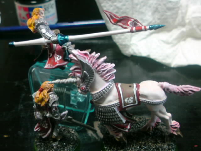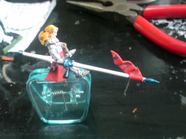 ロイス作成・ランス下地塗り。白に赤い旗、金属をメタリックブルー