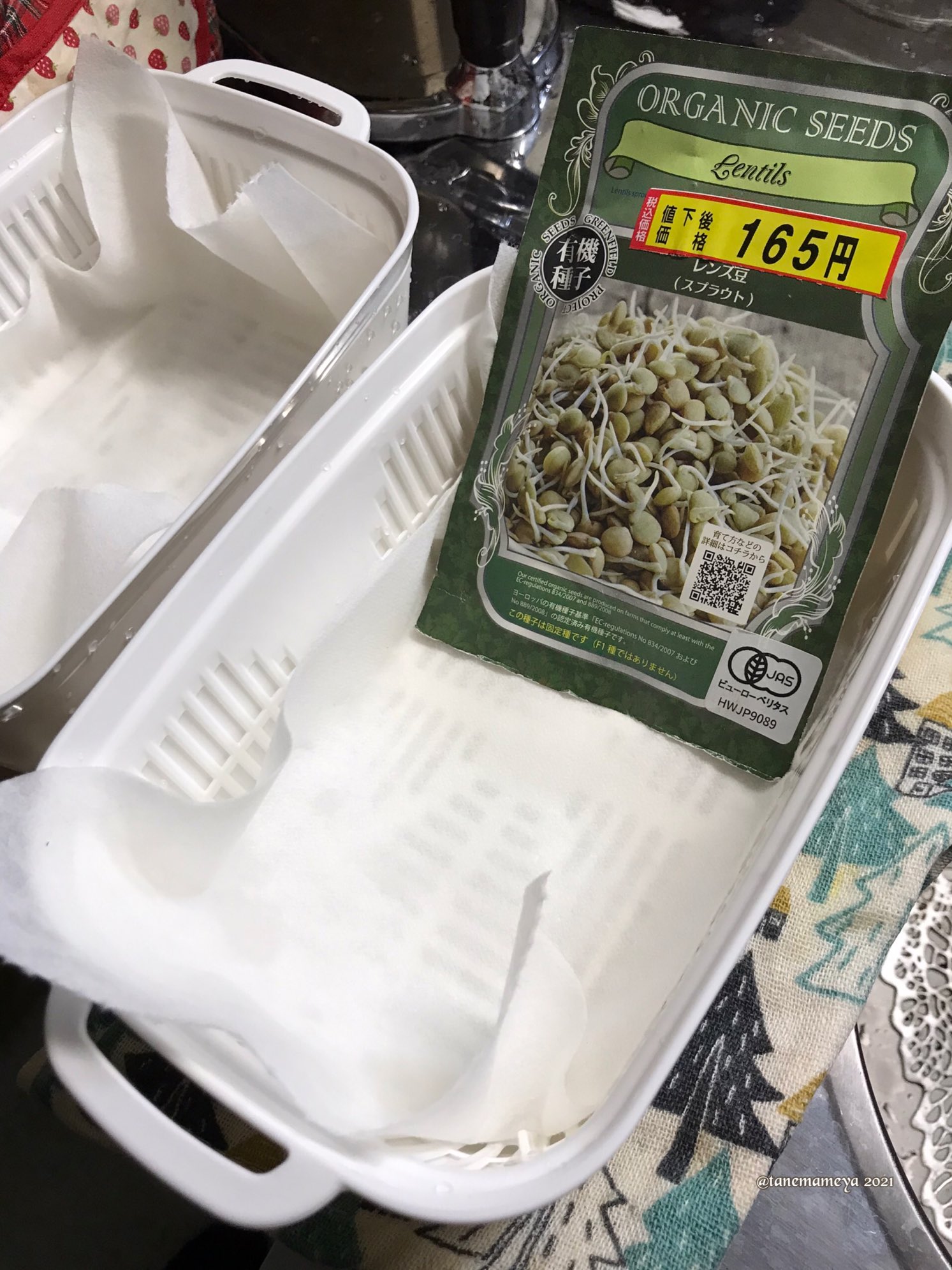 お安いレンズ豆をもやしにしてみる